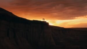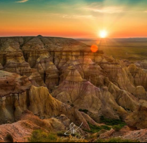 불타는 일몰: 해 질 녘 절벽 끝에 서서 바라보는 붉은 파노라마는 몽골 여행 중 가장 강렬한 시각적 경험을 선사합니다.